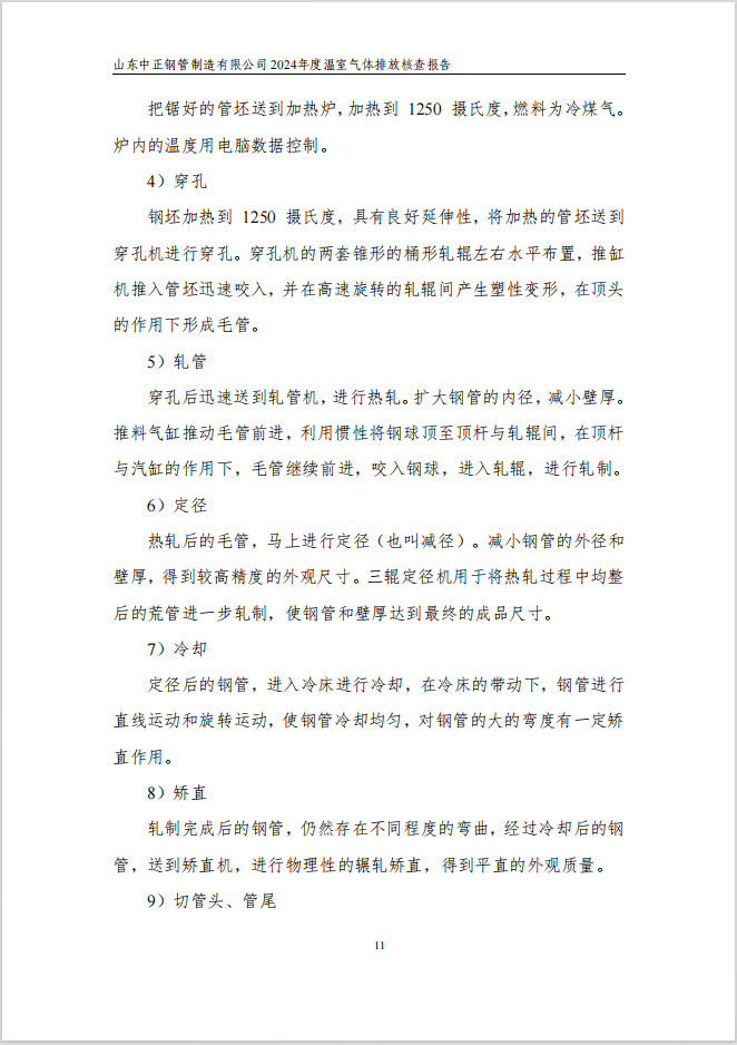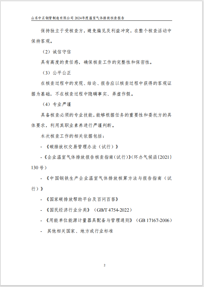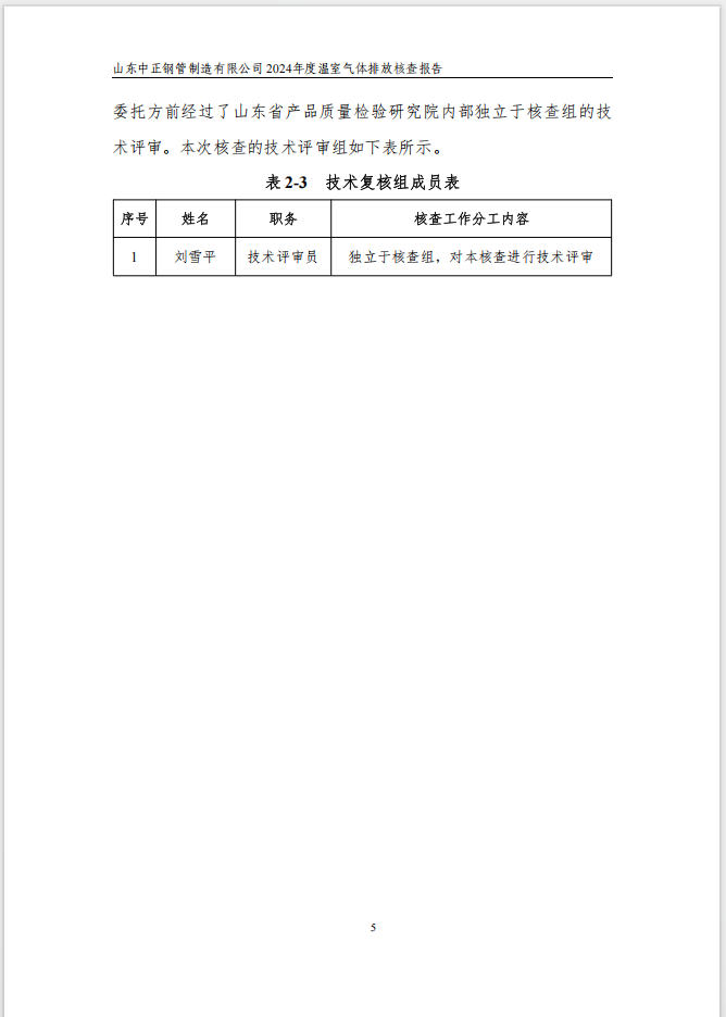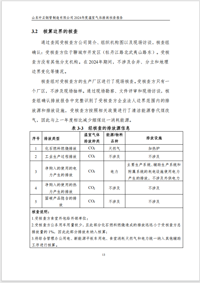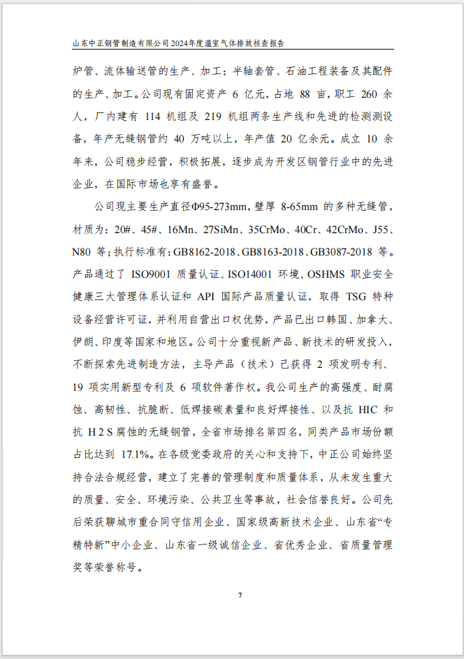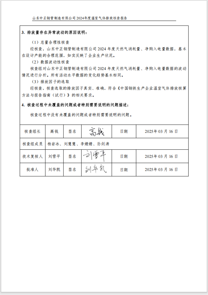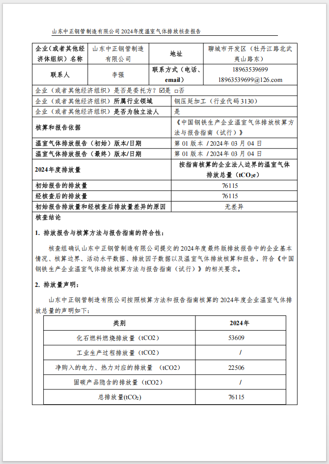 【概要描述】山東中正鋼管制造有限公司2024年度 溫室氣體排放核查報告