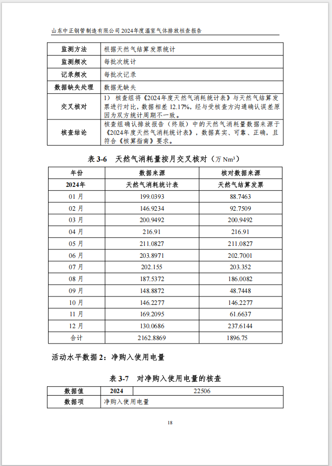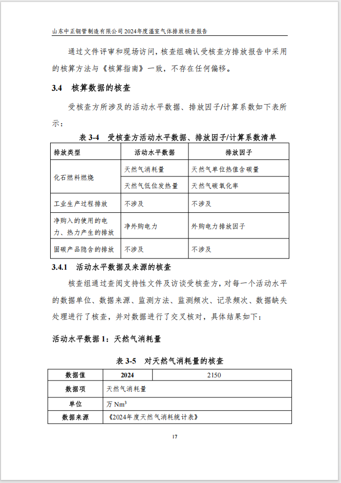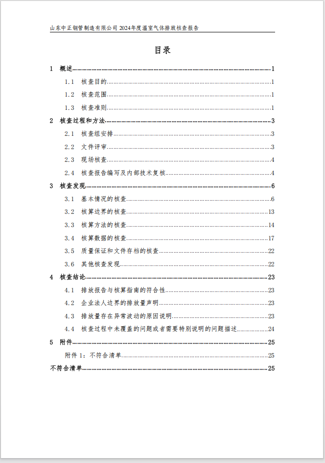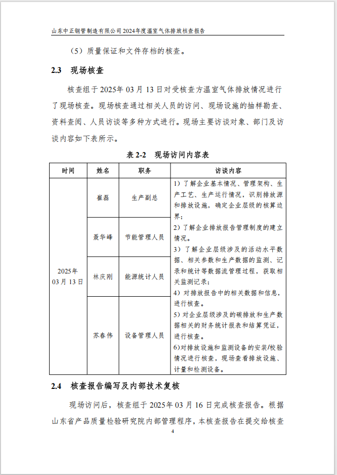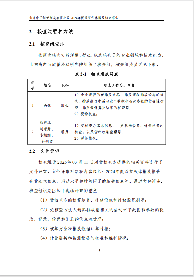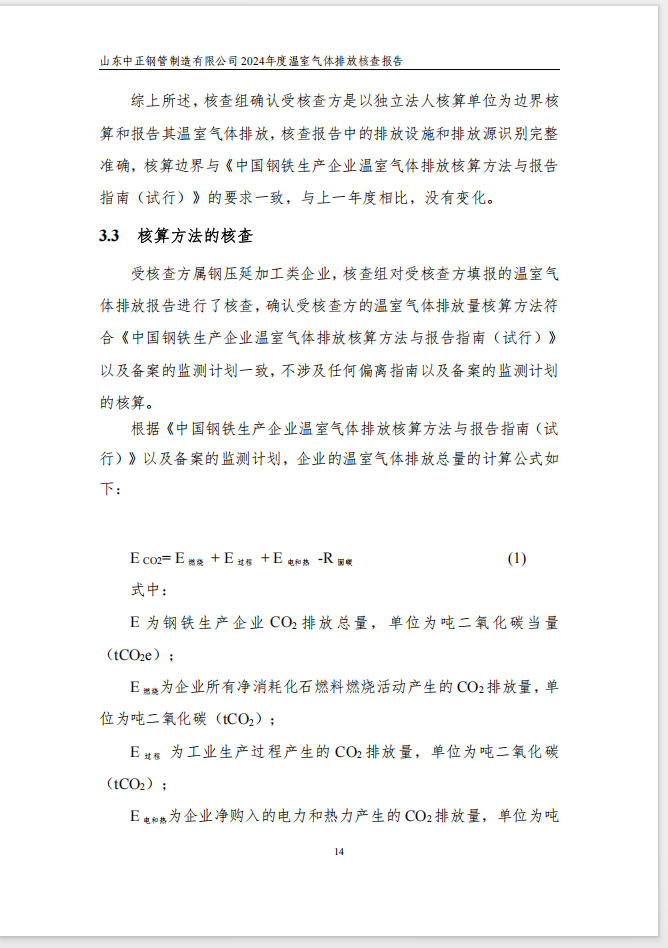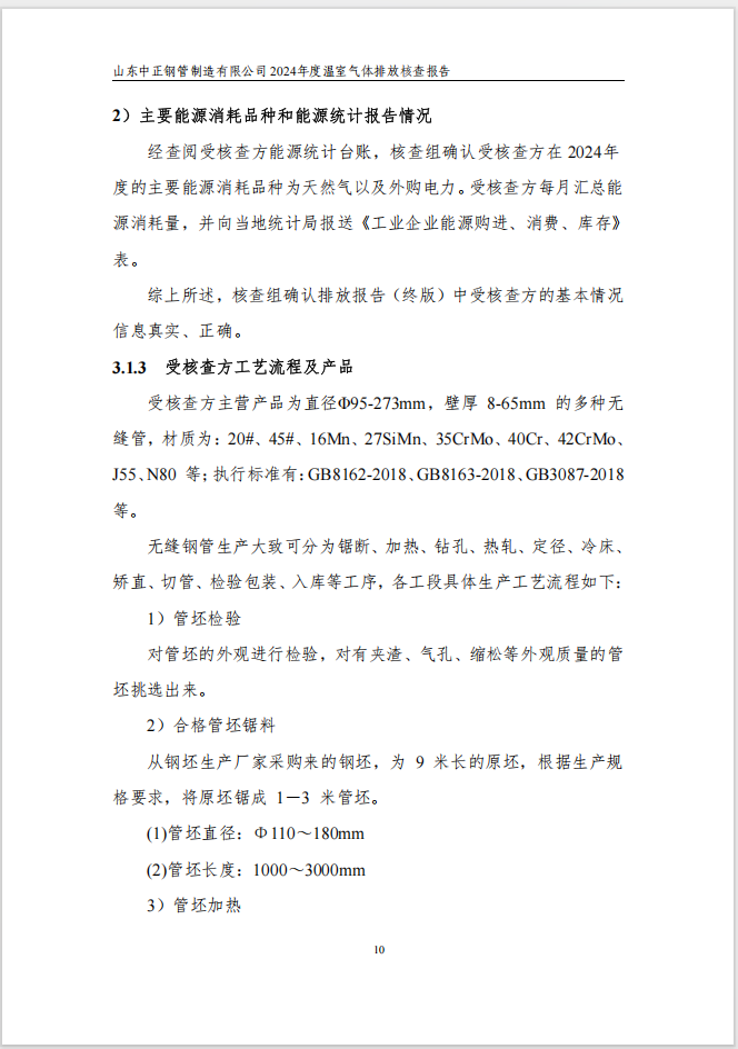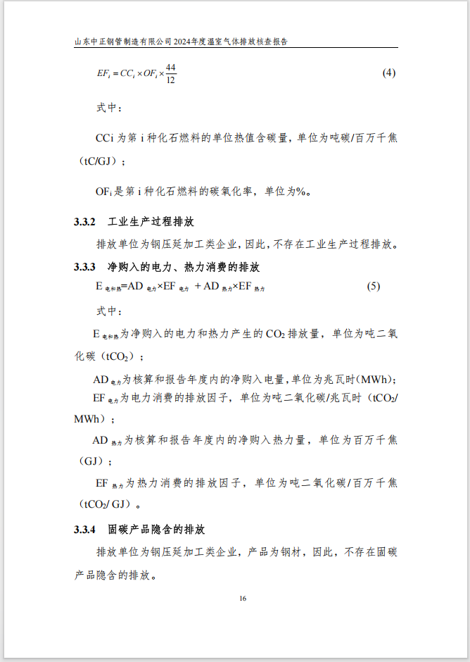 【概要描述】山東中正鋼管制造有限公司2024年度 溫室氣體排放核查報告